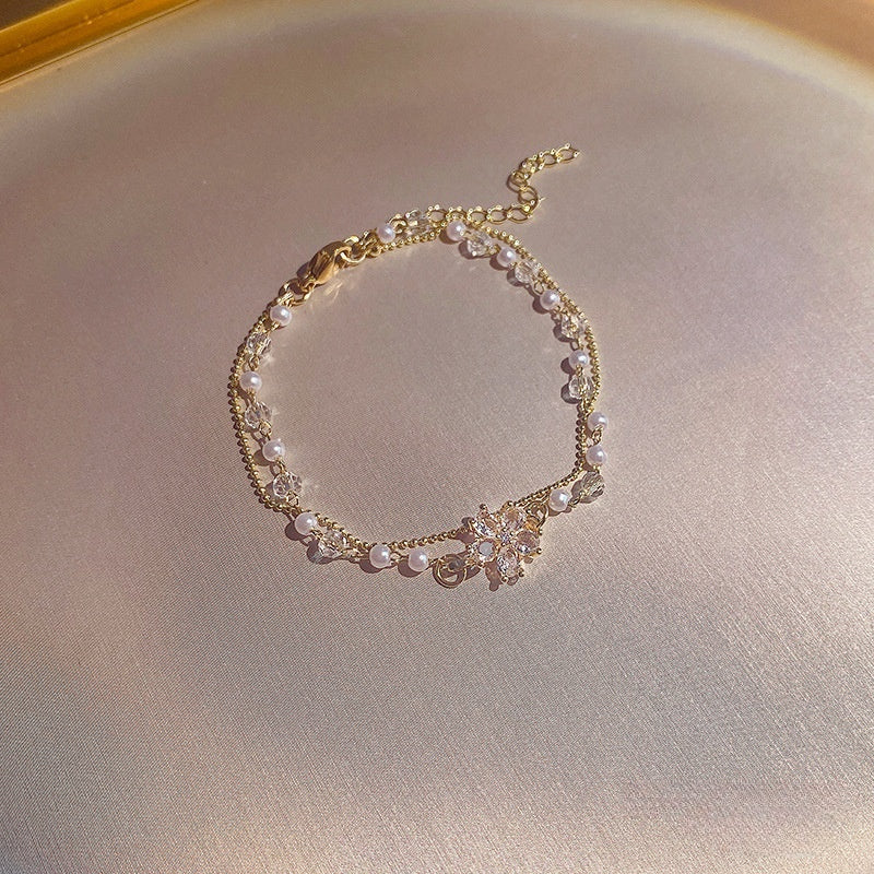 Indulge in opulence with our Titanium Steel Pearl Double Bracelet. Crafted from premium titanium steel, this bracelet features a sparkling zirconia flower pendant and delicate pearl accents. Elevate any outfit with this exquisite Korean-inspired accessory. Shine and charm wherever you go.