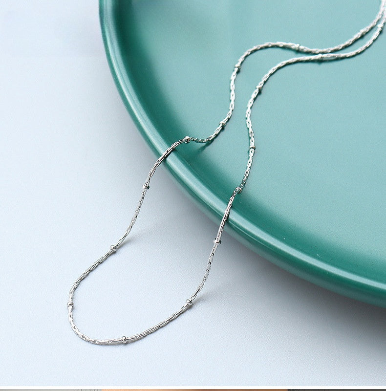 Crafted with exquisite 18K gold-plated titanium steel, this vertical square bead chain is the epitome of elegance. The delicate chain measures 40cm with an additional 5cm extension, making it the perfect length to accentuate your collarbone.