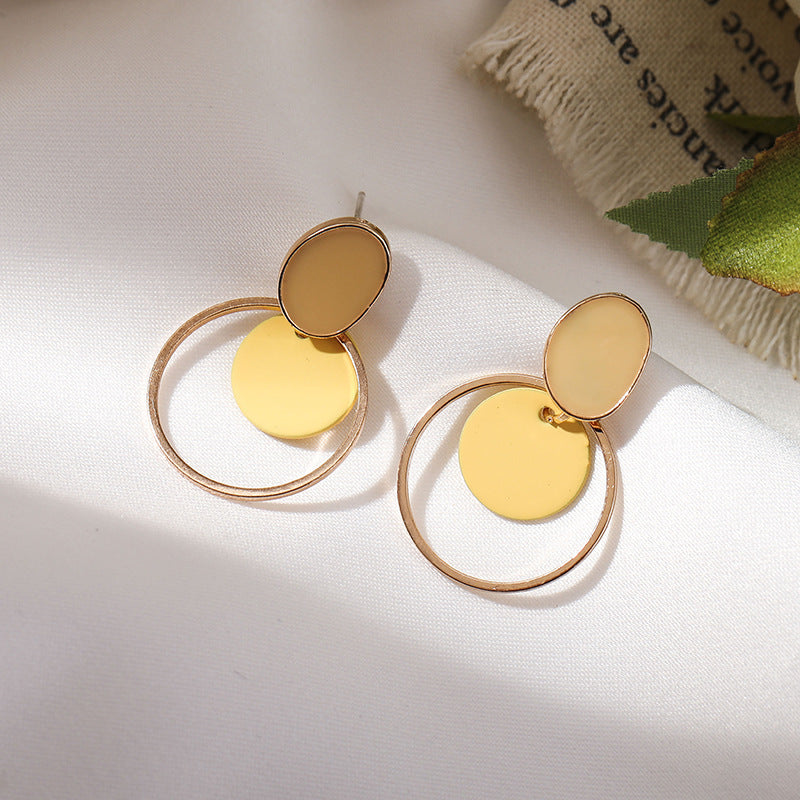 Elevate your style with these 925 silver drop earrings featuring a double ring design and yellow color. The perfect statement piece for any occasion, these earrings will give you a trendy and slimming look. Add a touch of fashion and elegance to any outfit with these versatile and chic earrings.