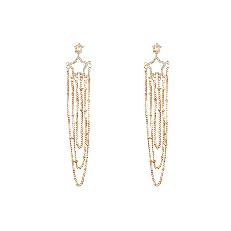 Indulge in luxury with our Double Star Sparkle Chain Tassel Earrings. Crafted with 925 sterling silver and a unique design, these Korean-style earrings exude a sense of extravagance. The dazzling tassels and star detailing add a touch of elegance to any outfit. Elevate your look with these premium earrings.