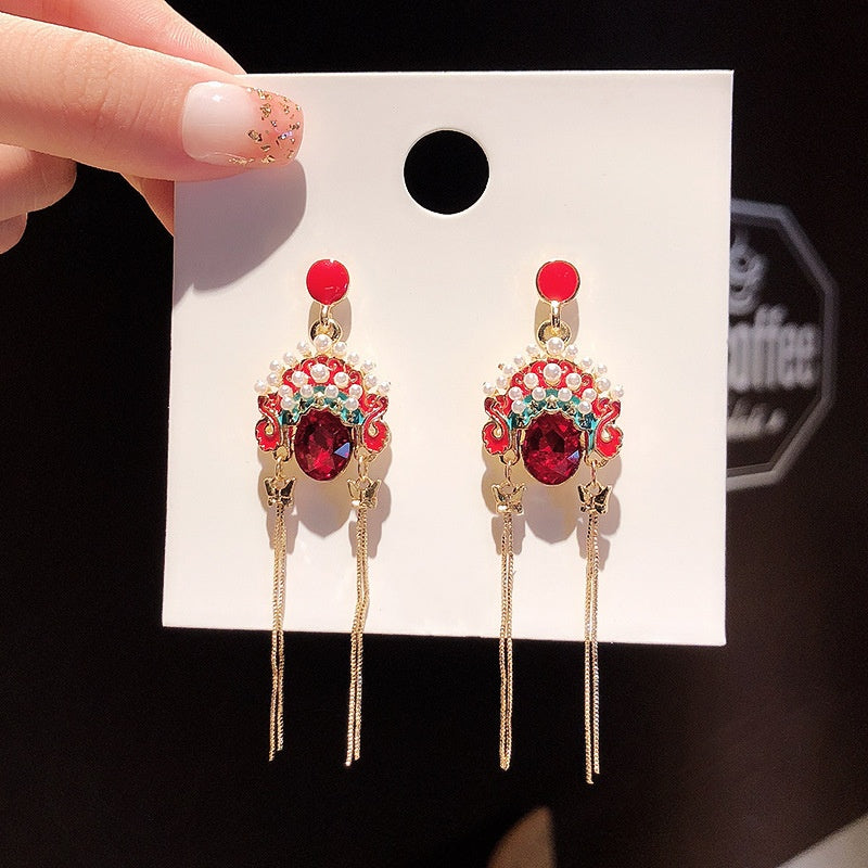 Add a touch of elegance and sophistication to your outfit with our Chinese Opera Mask New Year Earrings. These earrings feature a long, cascading tassel design with a silver needle made of premium S925 silver. Perfect for any occasion, these earrings will elevate your style and add a touch of whimsy to your look.