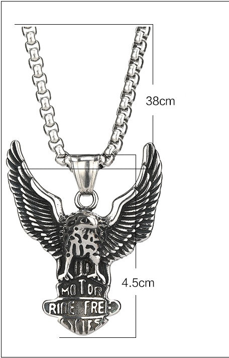 Channel your inner strength and confidence with our Eagle Wings Overbearing Tide Cool Student Titanium Steel Necklace. This vintage-inspired necklace features a fierce eagle pendant, perfect for adding a touch of boldness to your style. Crafted from durable titanium steel, it's sure to make a lasting impression.