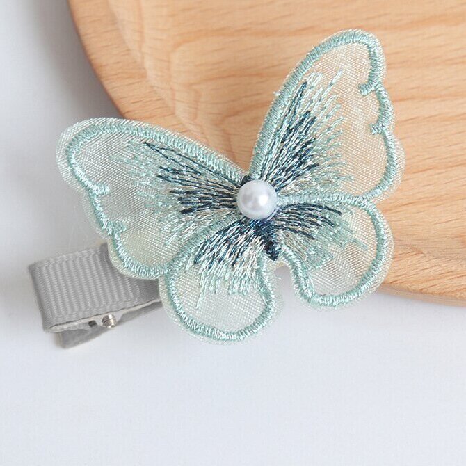 Enhance your little girl's hairstyle with our Green Embroidered Butterfly hairpin. This delicate accessory features a beautiful butterfly design, perfect for adding a touch of whimsy to any look. Expertly crafted with fine embroidery, this hairpin is both stylish and durable. A must-have for any young fashionista!