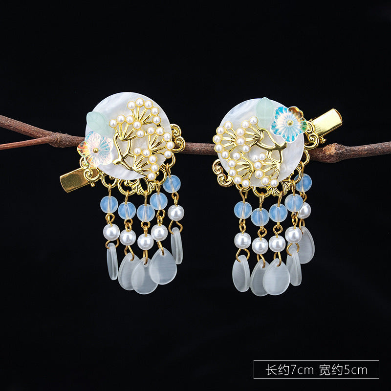Elevate your Hanfu look with the Step Swing fringe hairpins in gold. These traditional accessories add an elegant touch to your hair, while keeping it in place. Made with high-quality materials and designed for long-lasting wear, they are the perfect addition to any Hanfu ensemble.