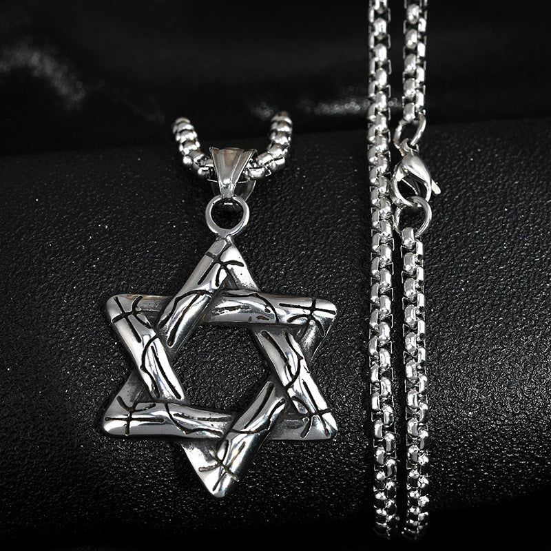 This Hexagram titanium steel necklace is perfect for both men and women. The pendant is a vintage and minimalist design, adding a touch of elegance to any outfit. Made with durable titanium steel, it is ideal for daily wear. Show off your unique style with this versatile necklace.