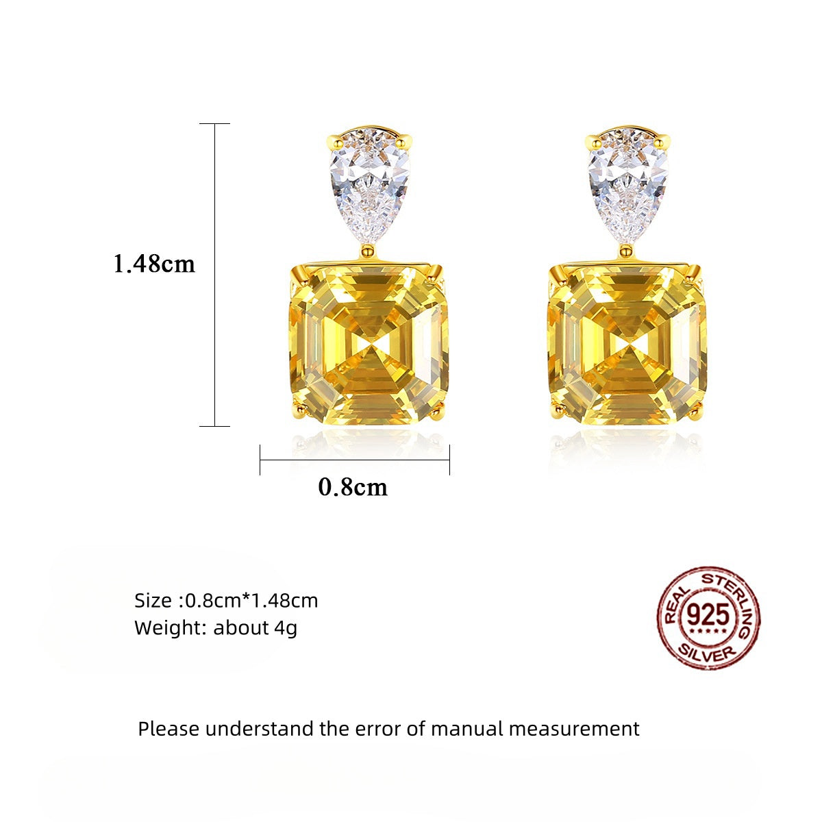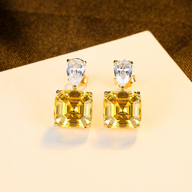 Add a touch of luxury to your accessory collection with our High-end Yellow Sugar S925 Silver Earrings. Handcrafted with exquisite S925 silver and adorned with a bright yellow square, these earrings are the perfect combination of sophistication and elegance. Elevate any outfit with this high-end fashion piece.