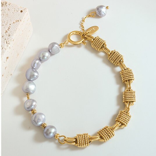 This unique bracelet features a non-fading gray freshwater pearl and a copper weave, creating a stylish and distinct piece. The freshwater pearl provides a touch of elegance, while the copper weave adds a trendy twist. Elevate any outfit with this one-of-a-kind bracelet.