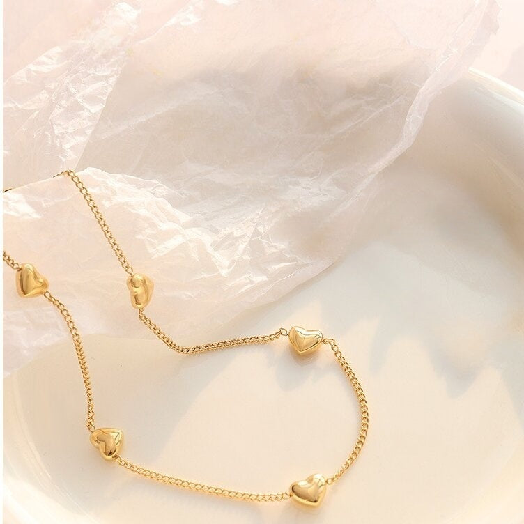 Love story: Heart to heart, an arrow through the heart, heart belongs, my heart will always be, heart to heart love (necklace). Titanium steel is stainless steel, electroplated 18k real gold, this gold-like love will never rust.