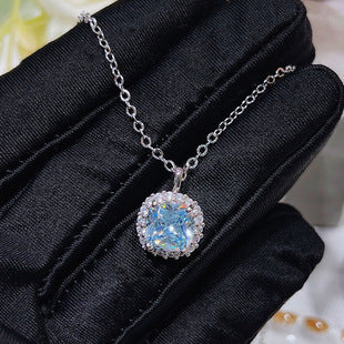 Indulge in luxury with our Light Luxury Aquamarine Zircon Necklace. Designed by a top-notch jewelry designer, this necklace features a stunning cushion-cut simulated aquamarine gem, guaranteed to sparkle with every move. Elevate your style with this exquisite piece.