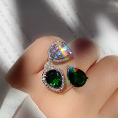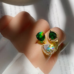 Size: Adjustable opening Material: 18k Gold plated+ copper+Colored zircon