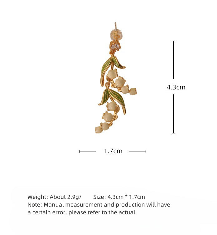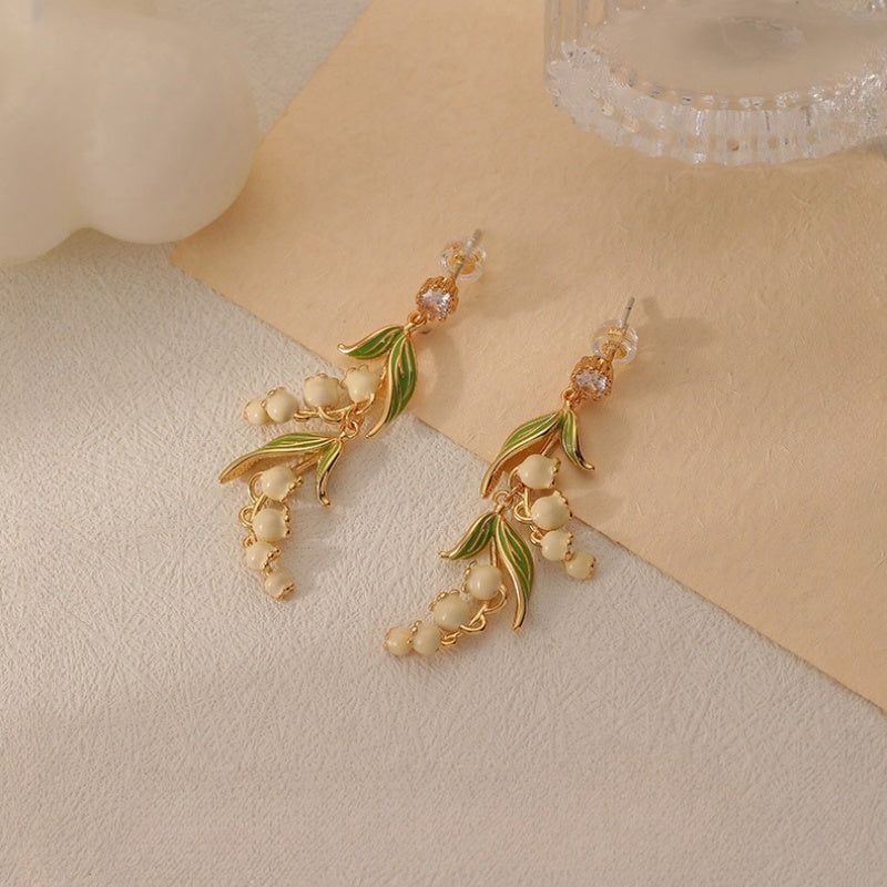 These long lily of the Valley drop glazed earrings are your secret weapon to enhance your style. Each petal is carefully carved, and the crystal glaze reflects a subtle glow. Wearing it, as if in the spring flower sea, every turn is a scenery. It is not only light as a feather, but also no burden to wear for a long time. Pair it with your cocktail dress or simple T-shirt, and it's easy to wear and show off your taste. Come and collect it, and make yourself the brightest flower in the crowd!