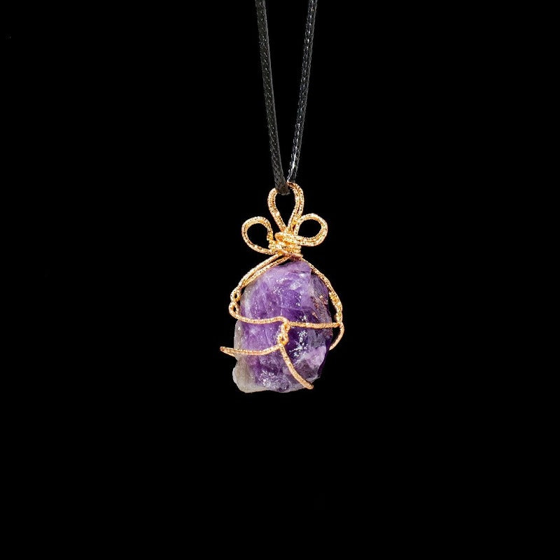 Showcase the natural beauty of amethyst with our hand woven gold chain necklace. The raw stone adds a unique touch to this elegant and exclusive piece. Perfect for the fashion-forward individual who appreciates the finer things in life. Elevate your style with this one-of-a-kind accessory.