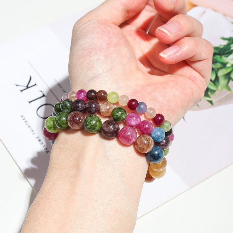 The Natural Candy Color Tourmaline Beaded Bracelet is a must-have for any gemstone lover. This beaded bracelet features stunning authentic tourmaline stones in a range of beautiful candy colors. Handmade and one-of-a-kind, this bracelet is the perfect addition to any jewelry collection.