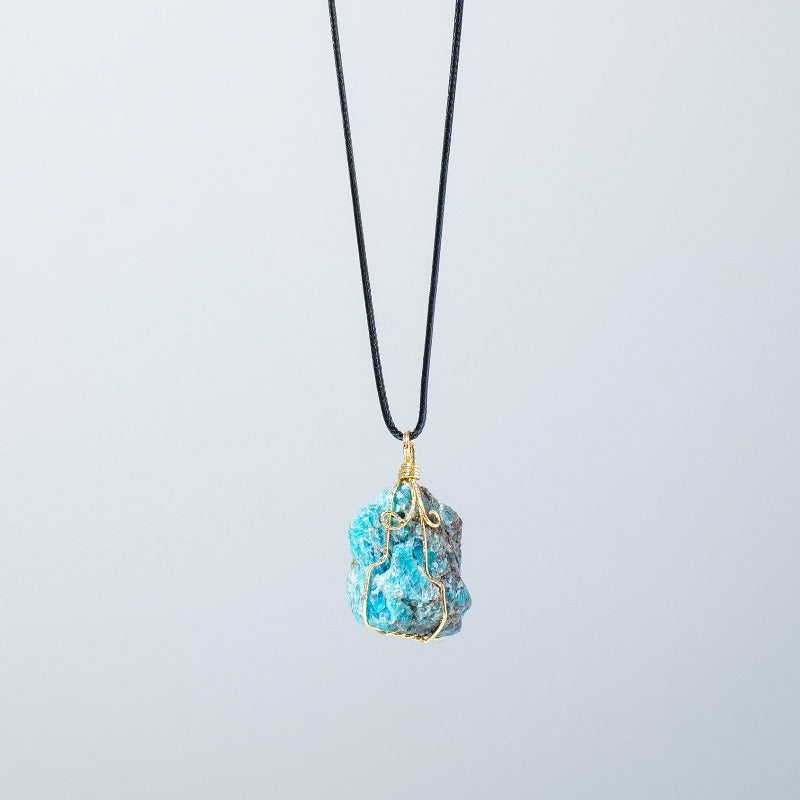Indulge in the luxurious beauty of our Natural Crystal Raw Stone Blue Phosphorus Grey Necklace. Hand-woven with a delicate leather cord, this unique piece features a stunning blue phosphorus grey stone that radiates elegance and sophistication. Perfect for adding a touch of refinement to any outfit.