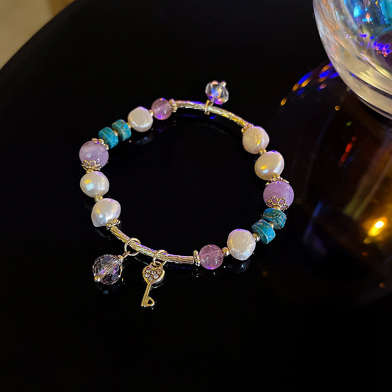 Key of Fortune Natural Pearl Crystal Colorful Gem Bracelet -S153G