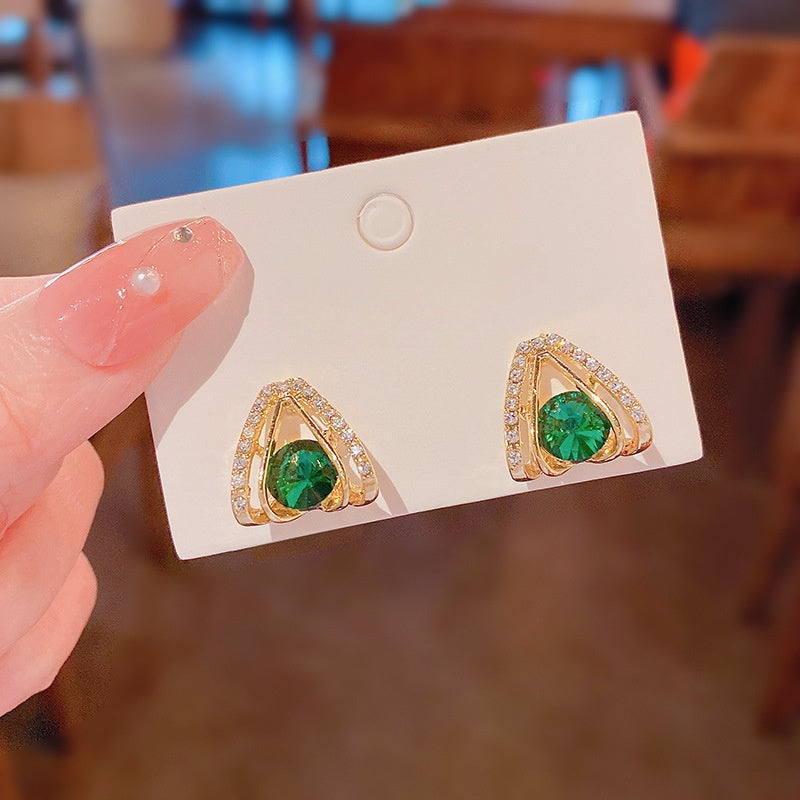 Indulge in luxury with our S925 Silver Needle Green Crystal earrings - E4979G. The delicate geometric design showcases brilliant zirconia stones and vibrant emerald crystals on a titanium steel base. Make a statement with these sophisticated and exclusive earrings.