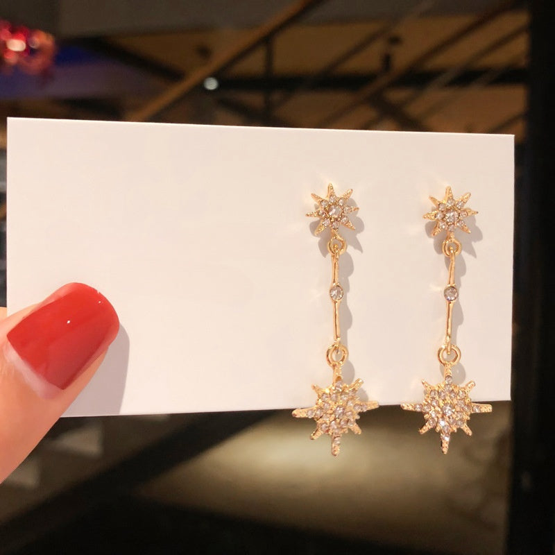These s925 silver needle earrings feature a unique octagon star fringe design, perfect for adding a touch of elegance to any outfit. Made with high-quality materials, they are both durable and stylish. Elevate your look with these versatile and trendy earrings.