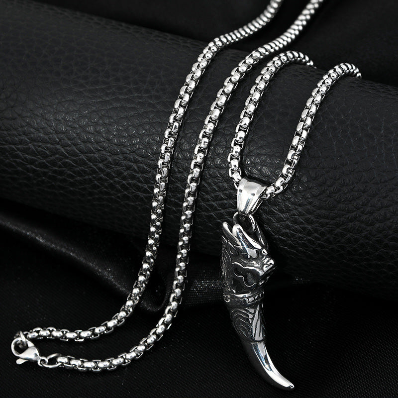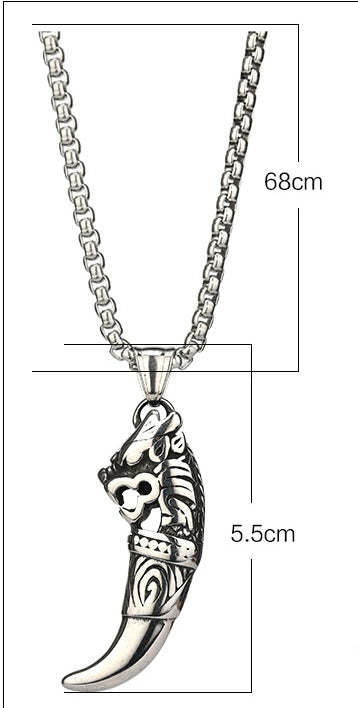 This Strong Wolf Teeth Necklace exudes a cool and edgy punk style. Crafted from high-quality titanium steel, it is durable and stylish. Its long length adds to its bold and dominant appeal. Perfect for those looking to make a statement with their accessories.