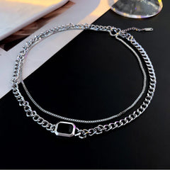 Indulge in pure luxury with our Silver Obsidian Double Chain Overlay Necklace. This exquisite piece features a double chain design that exudes sophistication and elegance. With its fashionable and trendy design, this necklace will be the perfect addition to your jewelry collection.