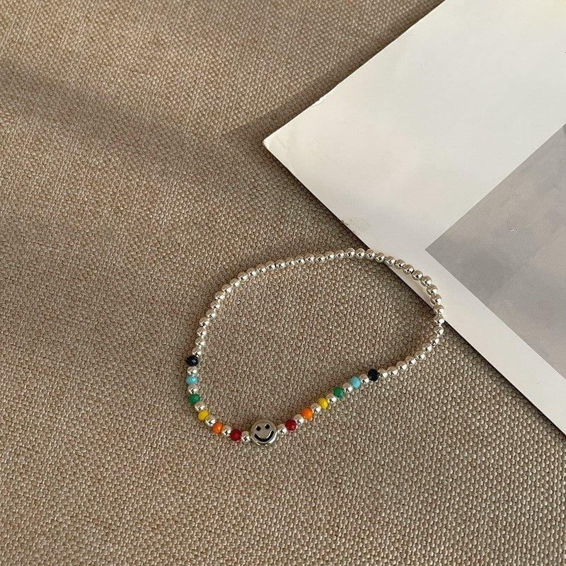 Add a pop of color to your outfit with our Smiley face colorful beaded bracelet! This fun and vibrant accessory is sure to brighten up your day. The playful design features a variety of colorful beads and a charming smiley face charm. Perfect for adding a touch of cheer to any look.